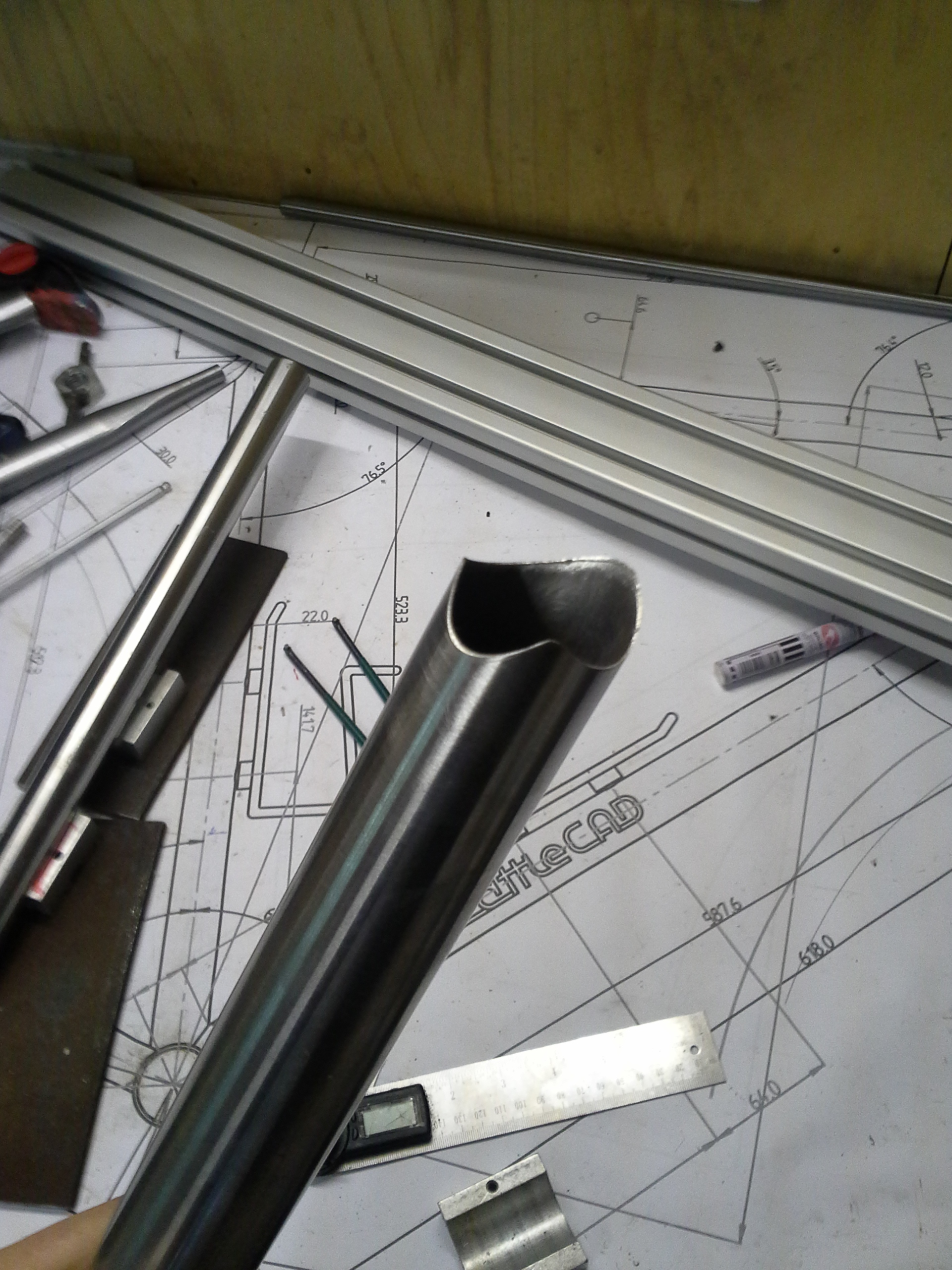the fit has to be near perfect. ideally if you put a piece of paper between the tubes and pressed you should get a mark the whole way round. if you are TIG welding you can be a little less fussy but with brazing you want it spot on even if you are using stronger braze (sif no.2 5% nickle) its still good practice and alloys you to use a smaller fillet (4x tube thickness so a 4mm radius in this case. I will probably go a little thicker to give margin of error.